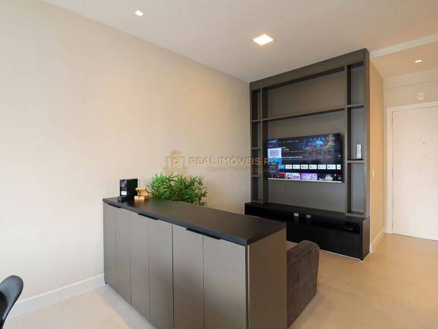 Apartamento Totalmente Mobiliado com 1 Quarto (Suíte), Escritório, banheiro social, Cozinha ampla, Varanda, 70m², 1 vaga de garagem.